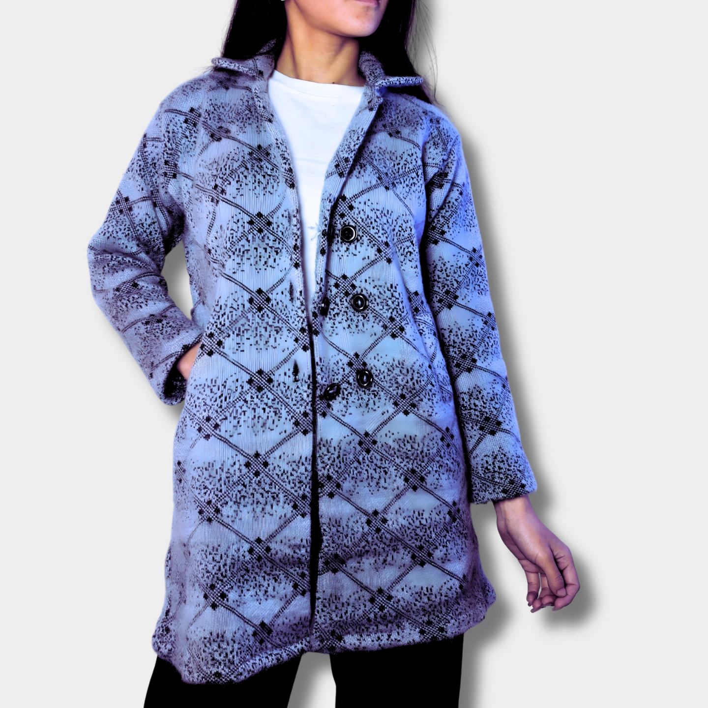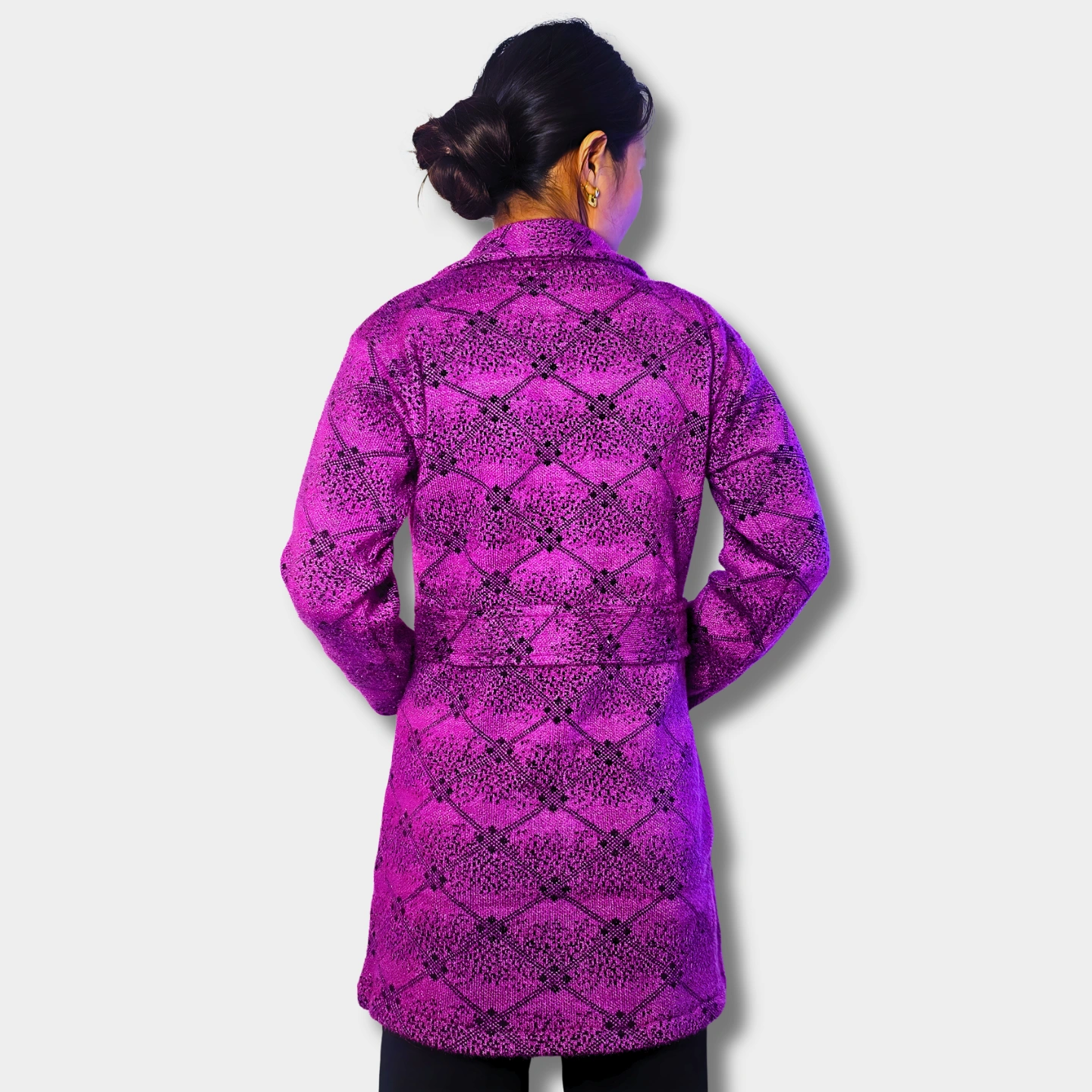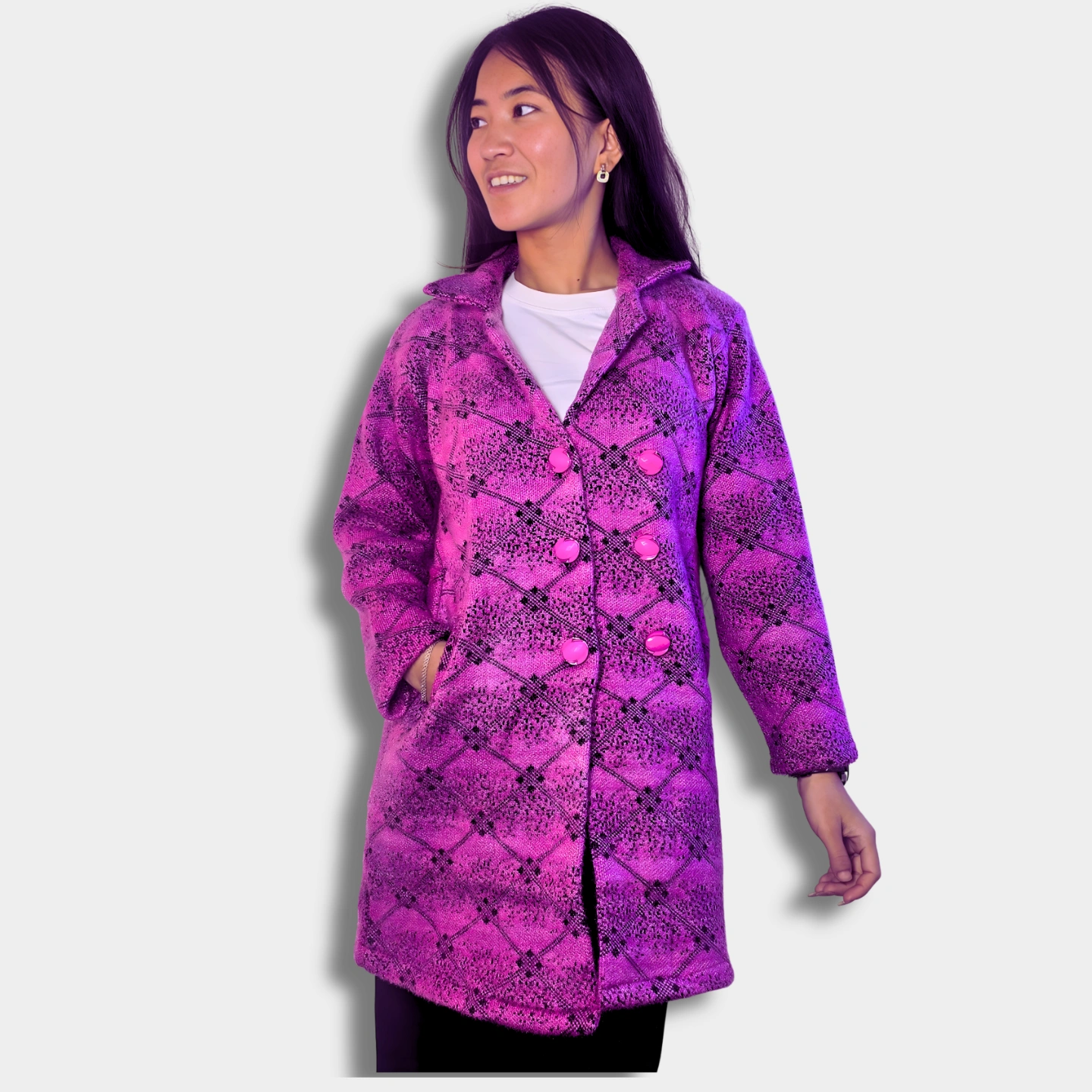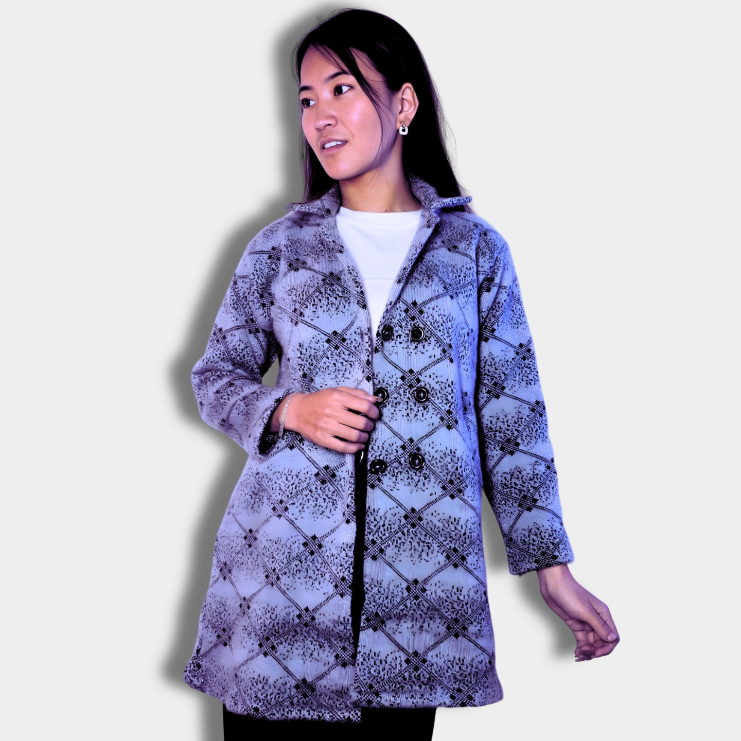 The Jumla Wool Long Coat is a beautiful blend of Nepali tradition and modern style. Handcrafted by Jumleli artisans using genuine Jumla wool, it offers unmatched warmth, comfort, and elegance. Designed for women, this coat is stylish, cozy, and perfect for any occasion — proudly made in Nepal.